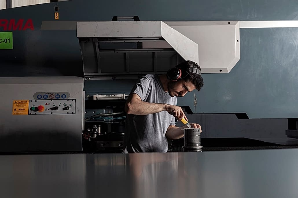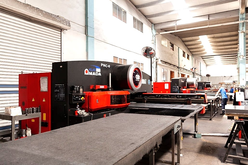 1 adet CNC Lazer Kesici, 4 adet CNC Zımba, 7 adet Bükme için Fren Presleri, 6 adet Manuel Pres ve 4 adet Sac Kesim ünitesi